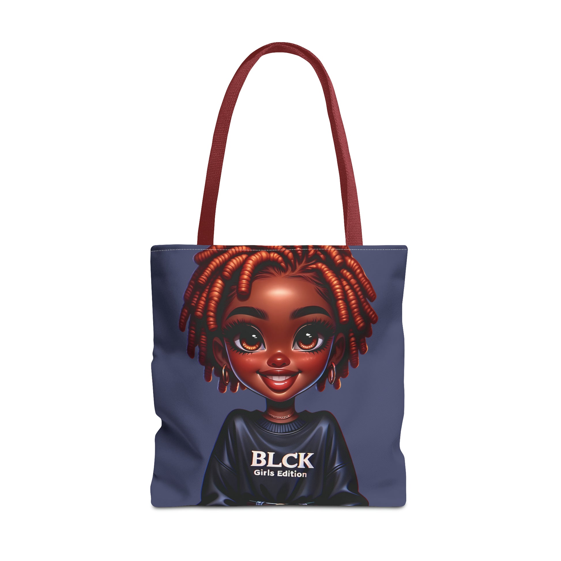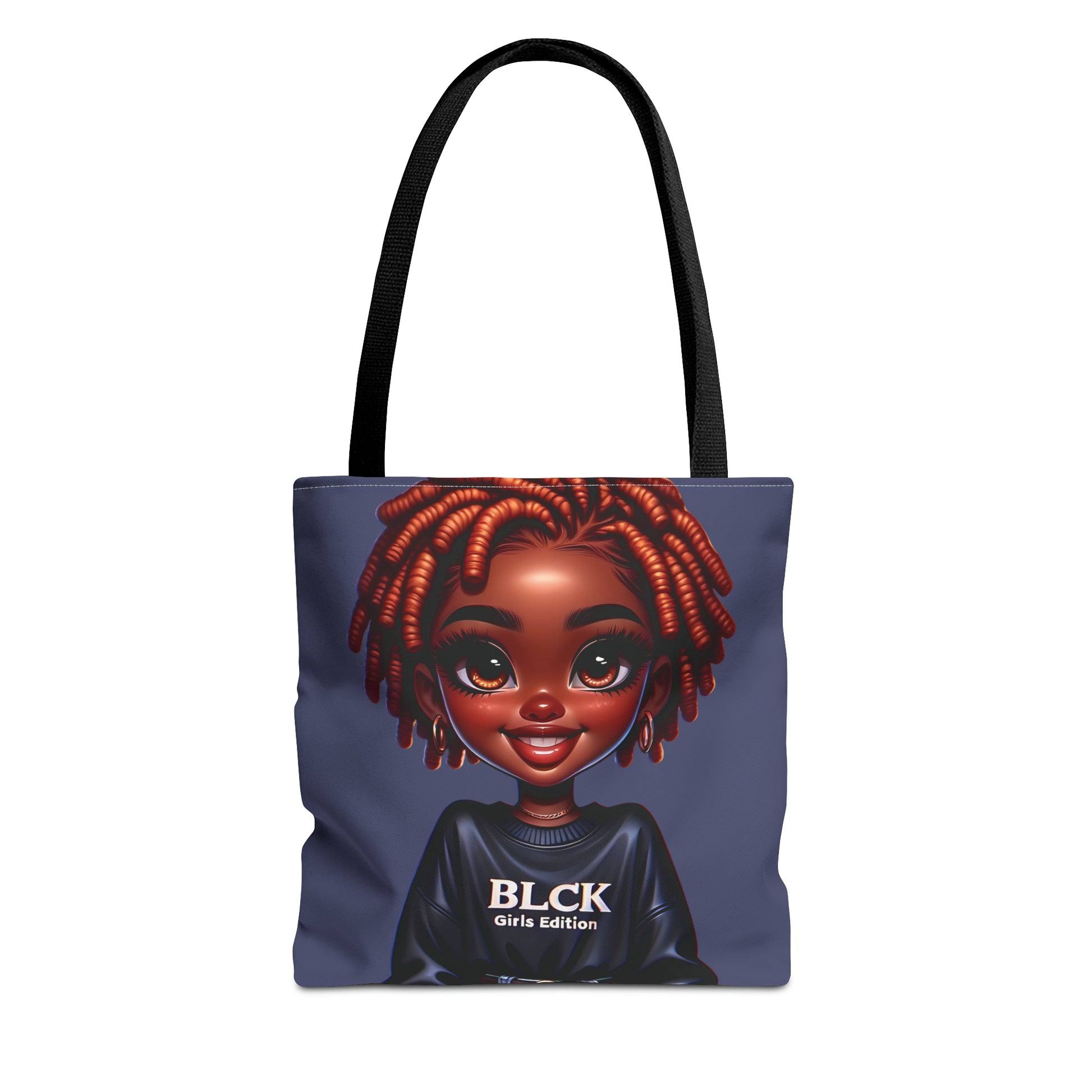 Design: Each bag showcases a vibrant illustration of a stylish black preteen girl, representing diverse beauty with variations including albino girls, girls with vitiligo, ginger hair, braids, and natural hairstyles.